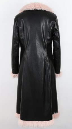 מעיל דמוי עור מרופד פרווה ורודה