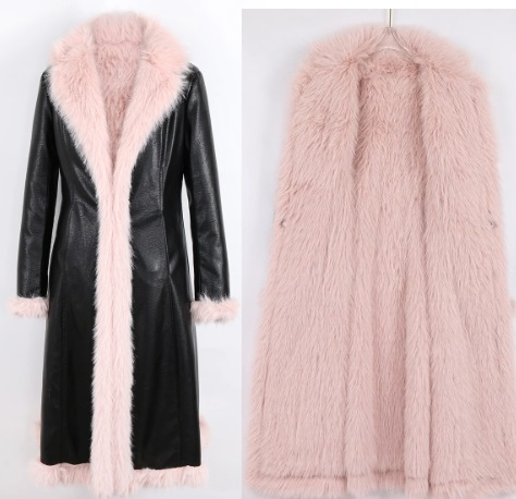 מעיל ארוך דמוי עור מרופד פרווה