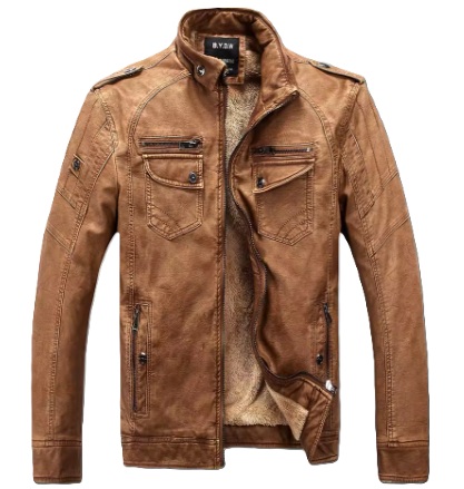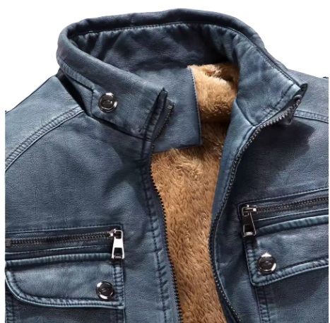 המעיל לגבר , עשוי חומר דמוי עור ומרופד בפרווה סינטטית מחממת.